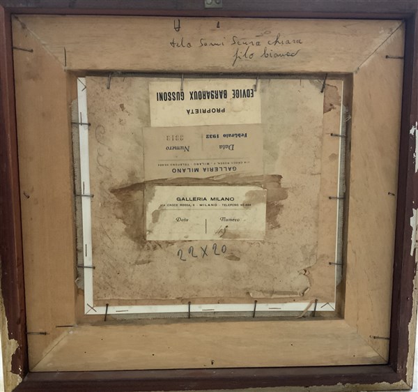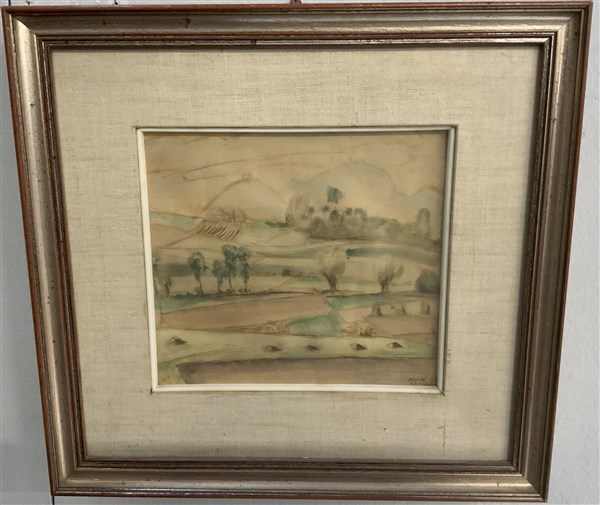"Paesaggio" tecnica mista su carta (cm 19x21) Firmato e datato 1925 in basso a destra. Al retro: firmato; cartigli. In cornice