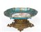 Manifattura francese, seconda metà secolo XIX. Alzata con vassoio in porcellana dipinta a scena classica nel cavetto e a dorature nella bordura. Base in bronzo dorato con tralci di vite e motivi geometrici in rilievo (h. cm 13,5) (difetti)