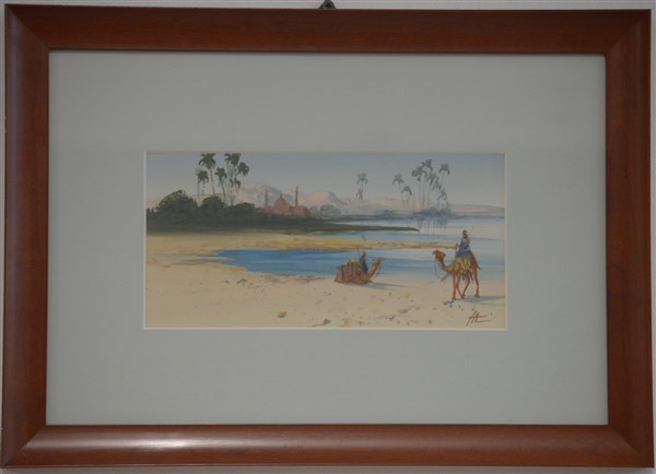 Firma indecifrata, Secolo XX "Scena orientale" tecnica mista (cm 12x24) Monogramma in basso. In cornice