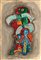 Pennarello su carta sagomata applicata su cartoncino dipinto