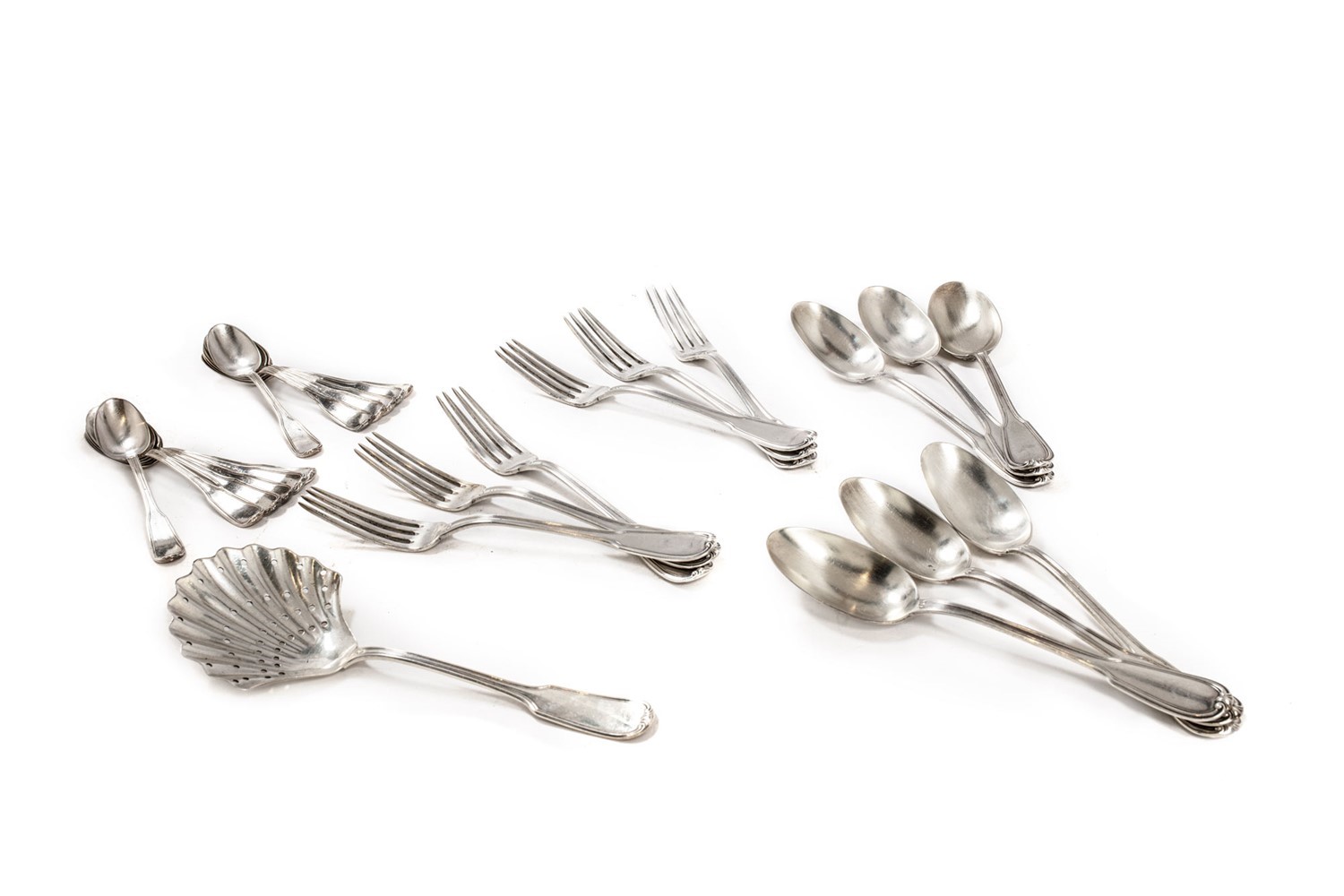 Servizio di posate da sei in argento 800, con 12 cucchiaini