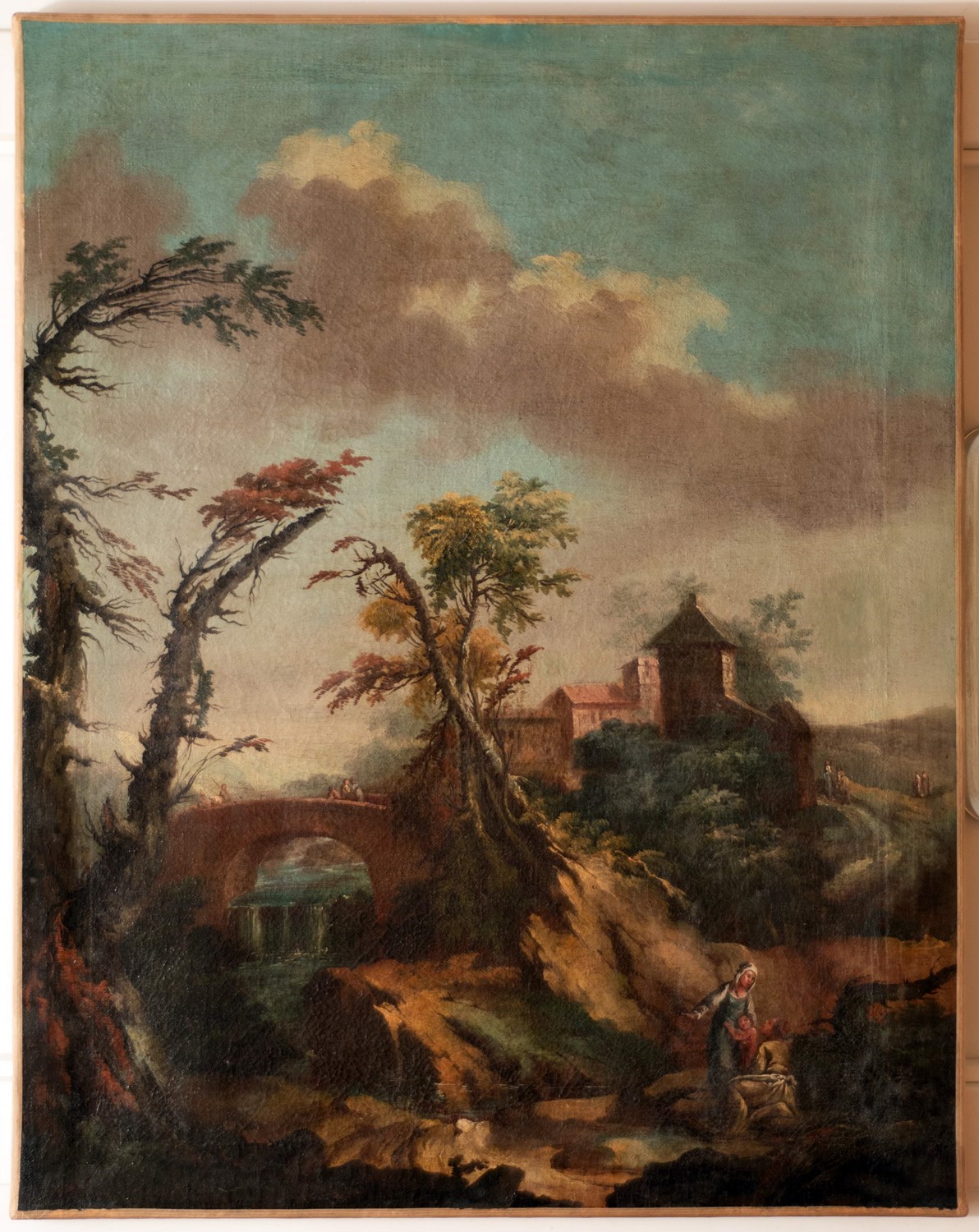 Scuola piemontese, secolo XVIII - Paesaggio fluviale con viandanti