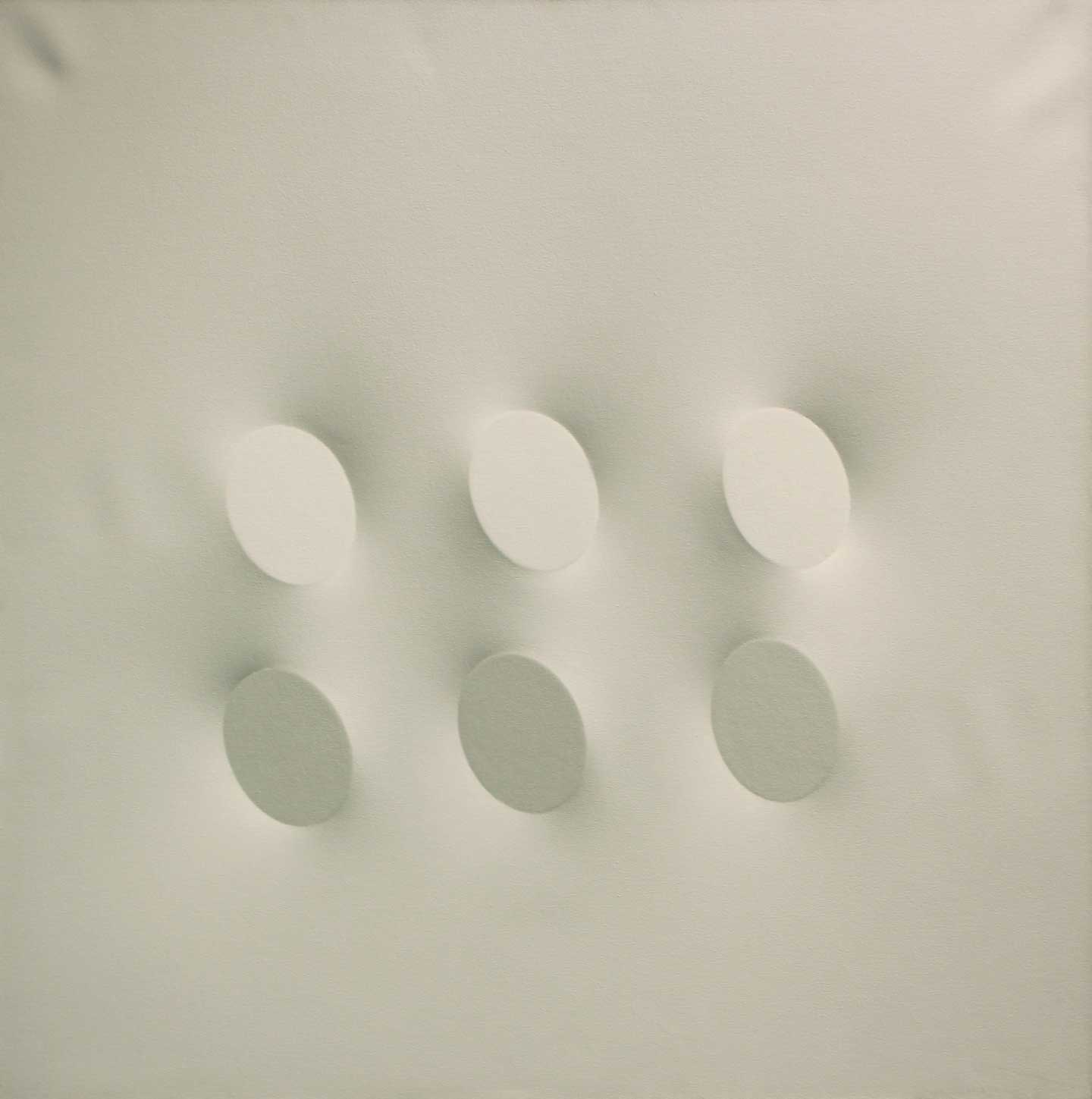 SIMETI Turi (Alcamo 1929) Sei ovali bianchi, 2007 acrilico su tela estroflessa, cm. 100 x 100 Firma, data 'Simeti, 07' (al retro) Autentica dell'Archivio Generale Turi Simeti, con n° 003434 Certificate of the Archivio Generale Turi Simeti, under no. 003434 Bibliografia: AA.VV. 'Turi Simeti. Catalogo Generale. Volume I', Christian Maretti Editore, 2007, p. 198