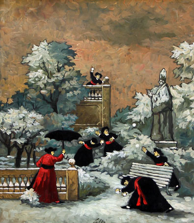 CAFFE' Nino (Alfedena 1909 - Pesaro 1975) Senza titolo olio su tavola, cm. 35 x 30 Firma 'Caffè' (in basso al centro) Autentica del figlio Alessandro Maria Caffè, in data 29/09/1992, con n° 1618 Certificate of the artist's son Alessandro Maria Caffè, dated 09/29/1992, under no. 1618