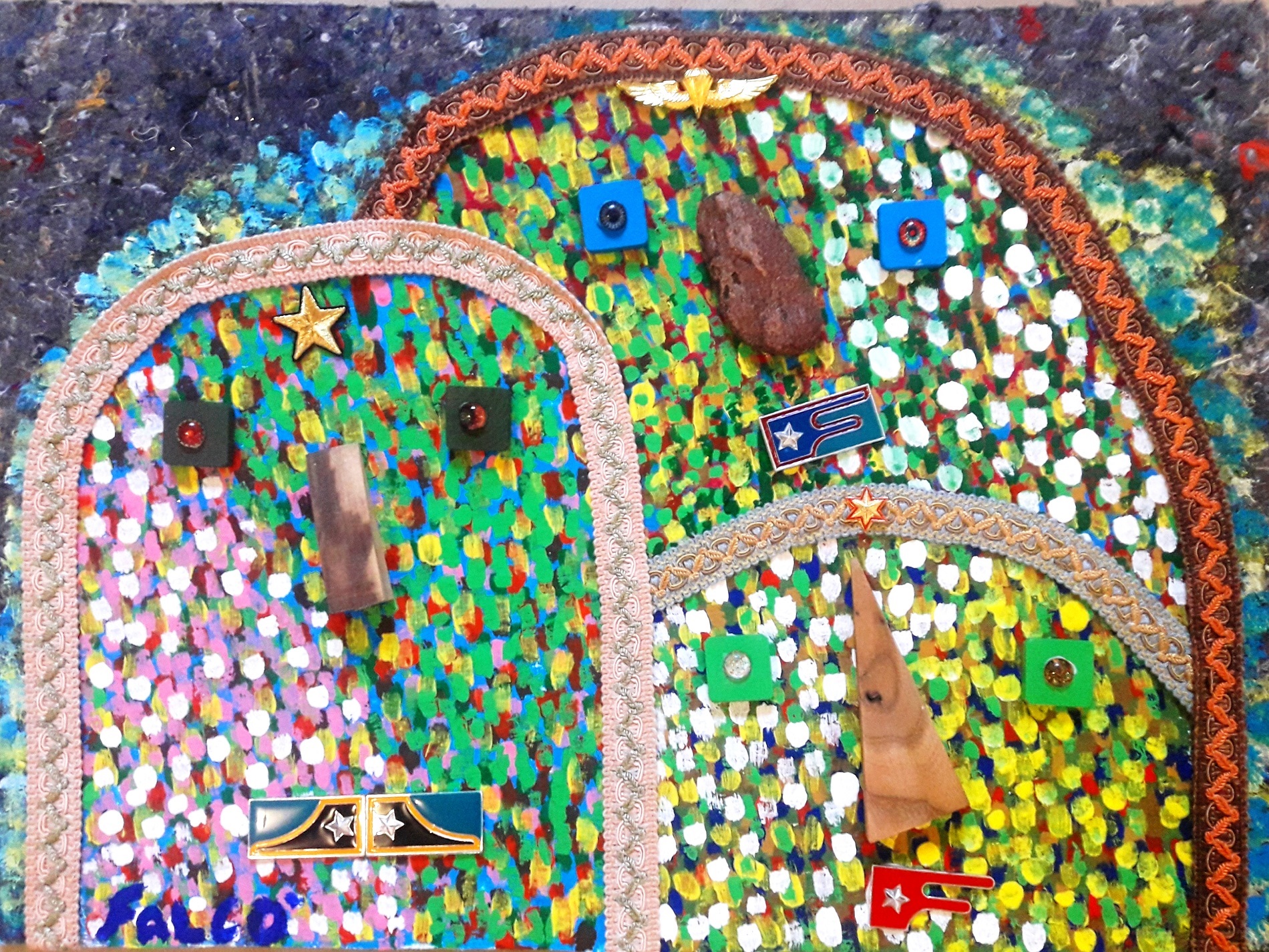 FALCO’ PASCQUALE Foggia 1952 “Volto di militare”Tecnica mista su tapisserie cm 40x56x3, Sul retro firma, titolo, misure e numero d’archivio. Autentica su foto.