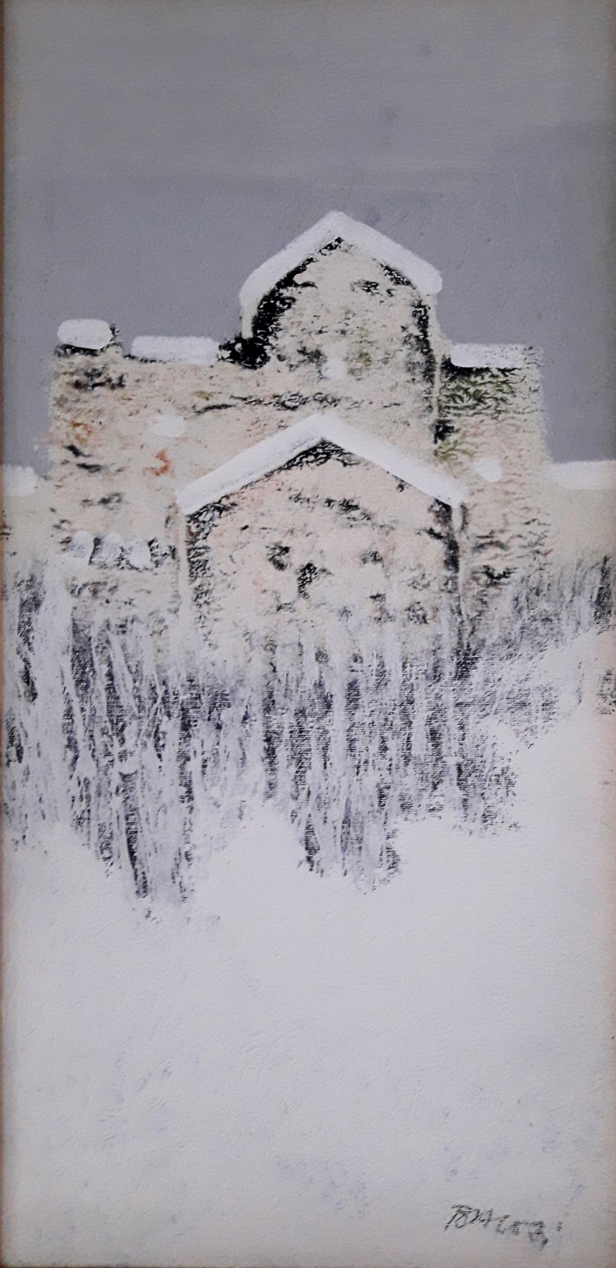 BACOSI MANLIO Perugia 1921-1998 ”Senza Titolo” Olio su tela cm 36x60. Firmato sul fronte in basso a destra e sul retro. Autentica su foto e certificato di garanzia della galleria di provenienza.