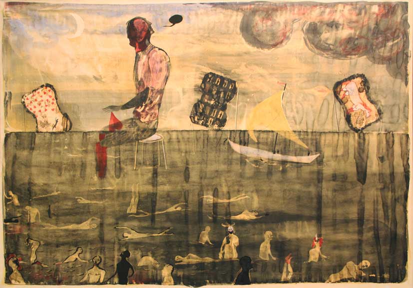 PERRONI Marco (Como 1970) Immersione, 1999 tecnica mista su carta intelata, cm. 97 x 139
