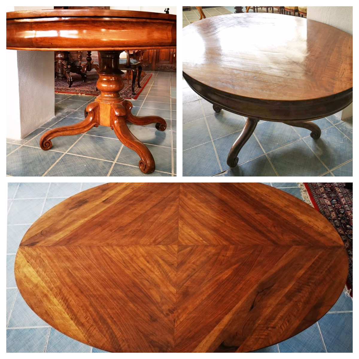 TAVOLO OVALE IN NOCE CON PIANO LASTRONATO A LISCIA