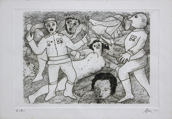 BAJ Enrico (Milano 1924 - Vergiate 2003) Senza titolo incisione su carta, cm. 49 x 66 P.A. #Firma 'Baj' (in basso a destra)