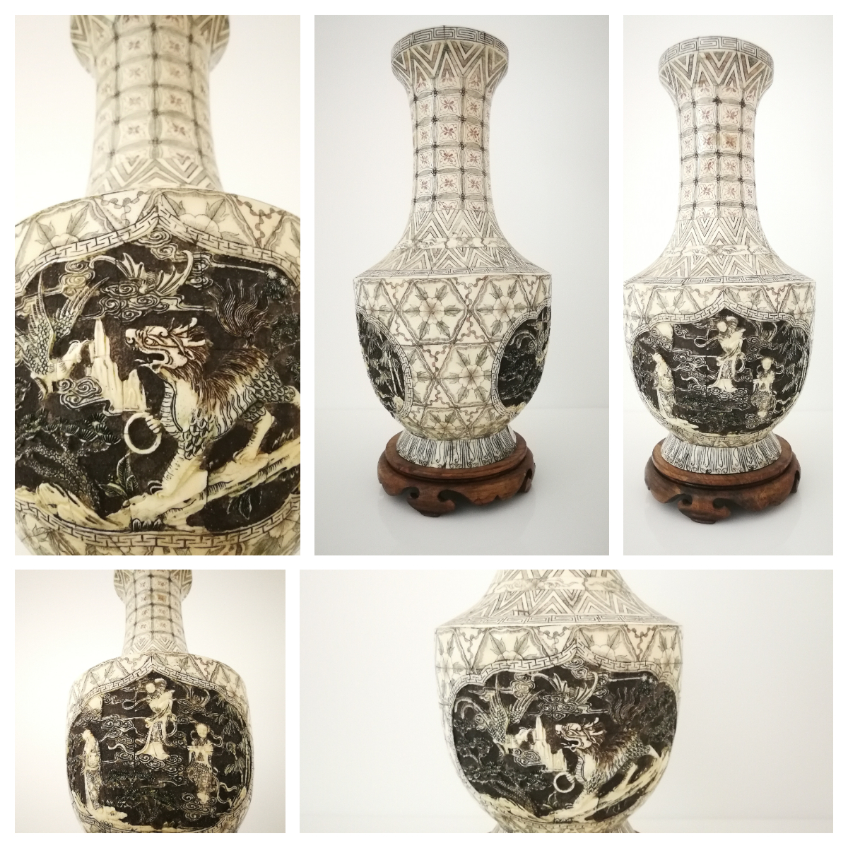 Vaso chiuso, riproduzione in osso periodo Meiji. Dimensioni: H 45 cm, L 20 cm, P 20 cm.