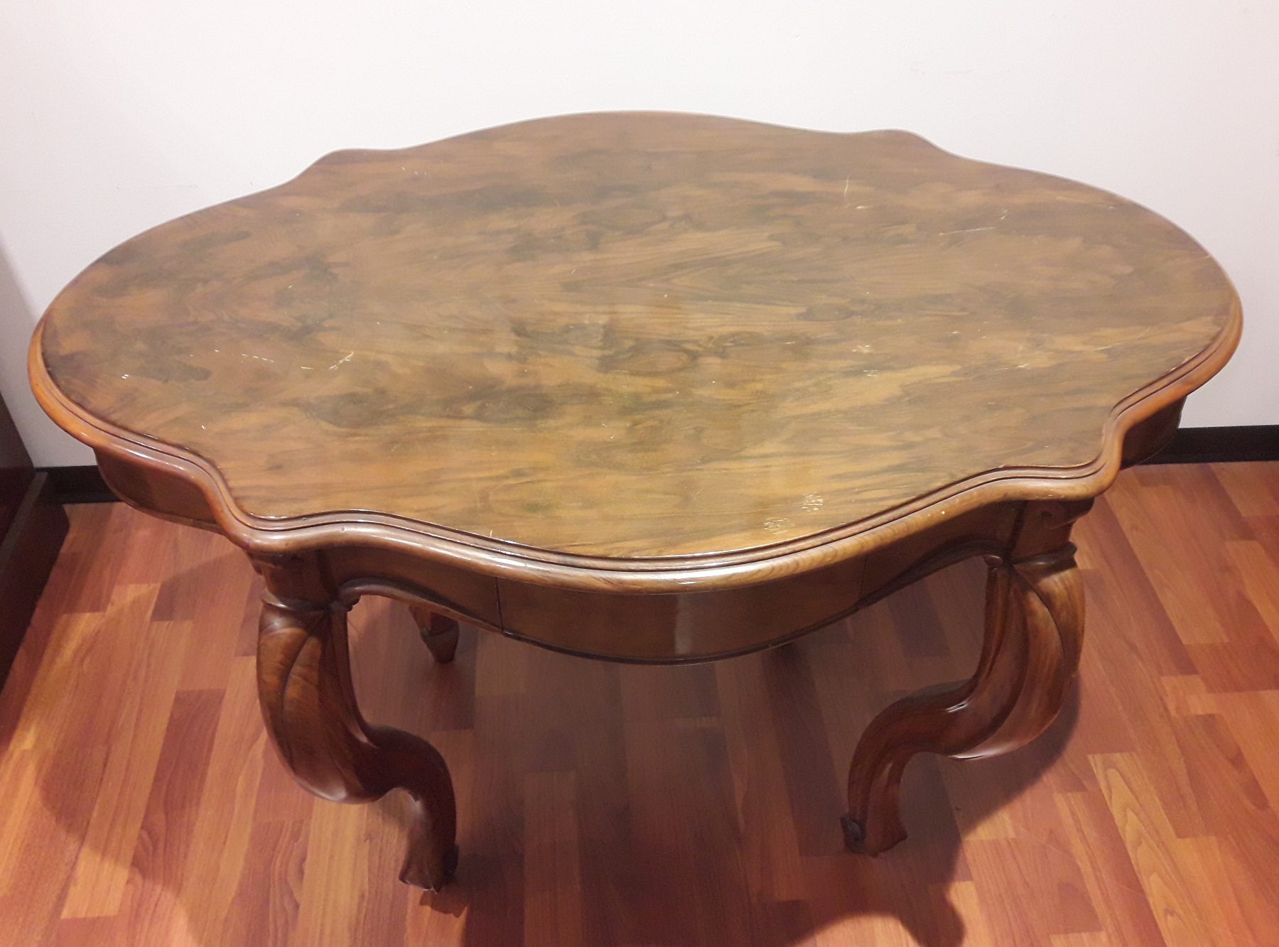 TAVOLO. Provenienza francese, dotato di 2 cassetti, realizzato in piuma di noce, fine 800. Misura cm 105x70x71 H.