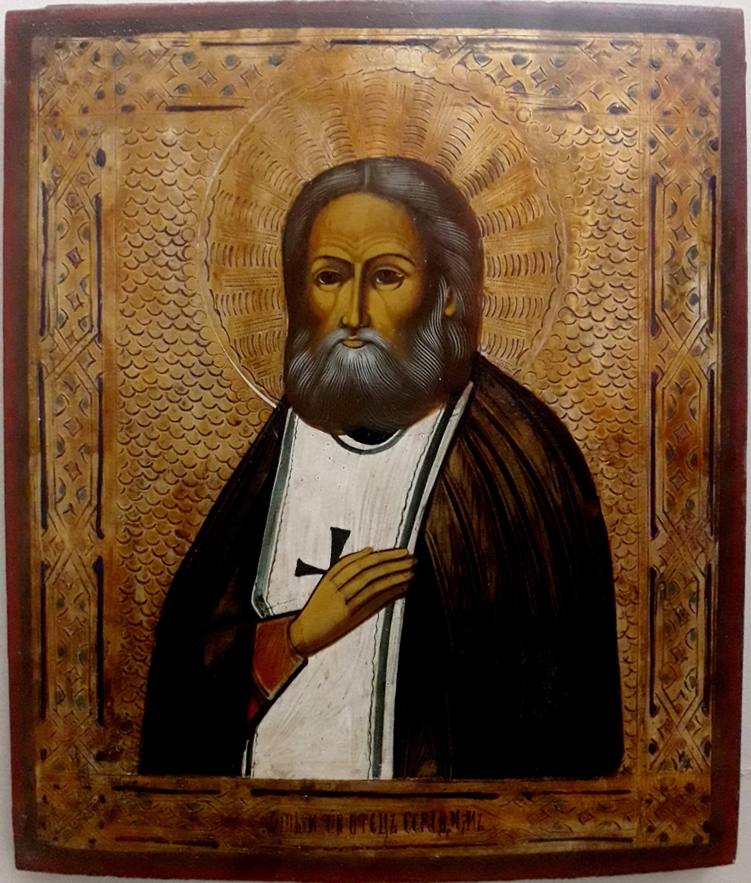 ICONA. Di origine russa, rappresentante S.Luca, risalente all’800. L’opera è firmata sul retro. Dimensioni cm 31,5x26,5x2,5