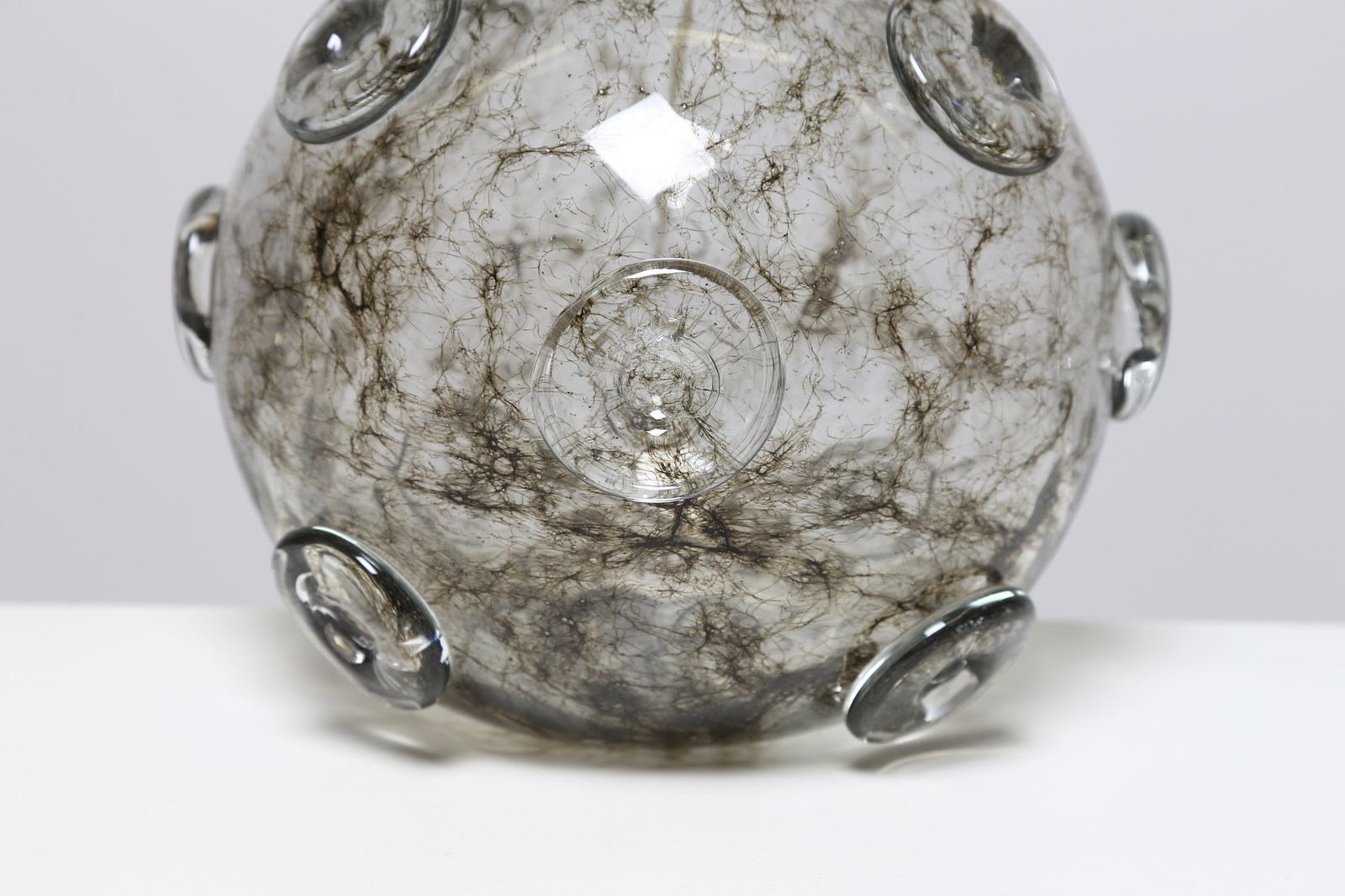BAROVIER ERCOLE (1889 - 1974) - Base lampada a forma sferica in vetro “crepuscolo” con applicazione di grossi anelli in vetro trasparente, per Ferro Toso Barovier, 1936 ca. .