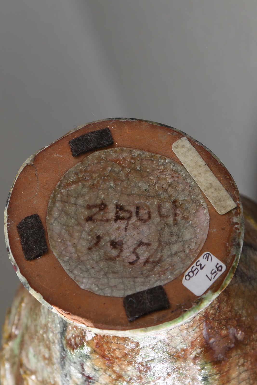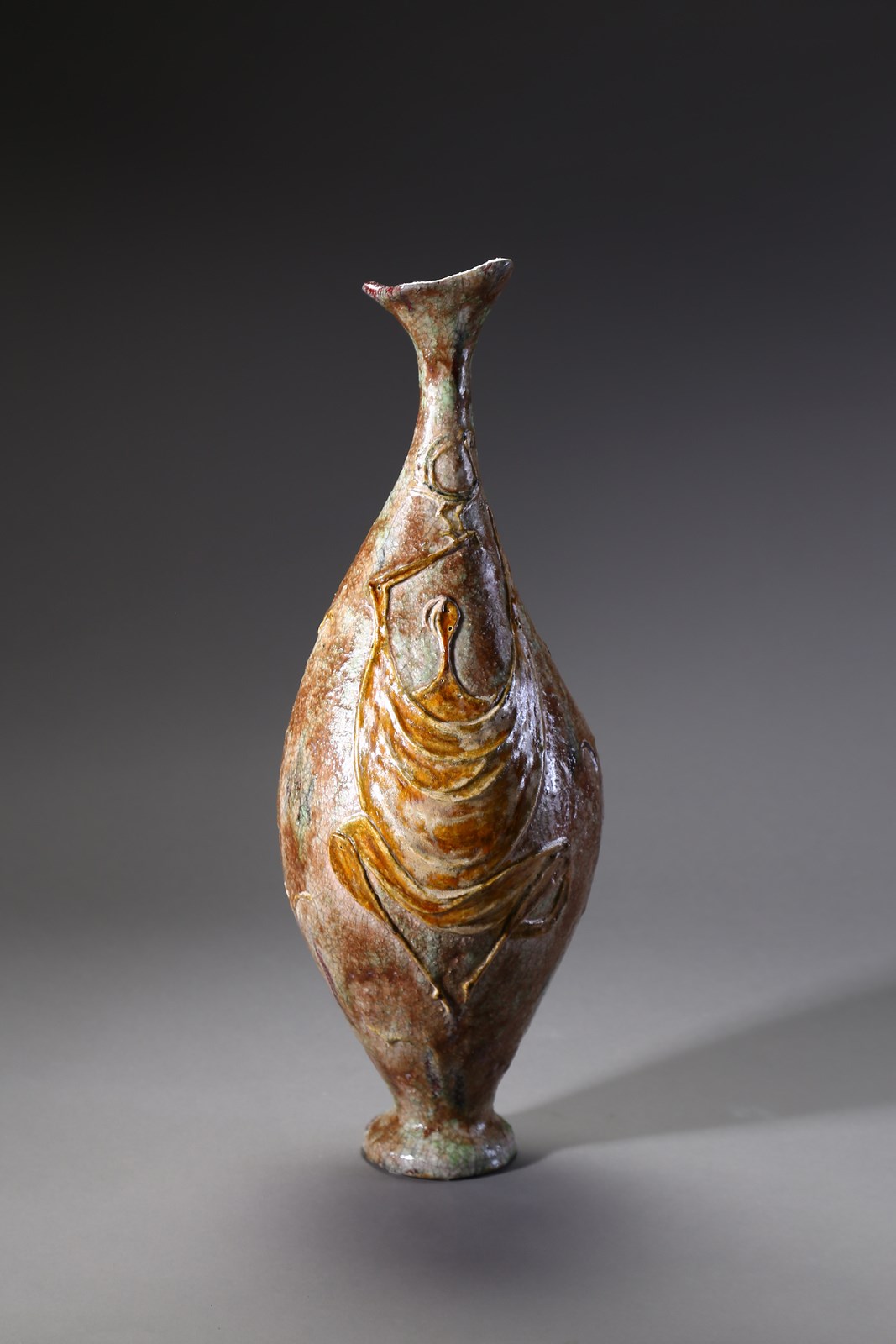 ZAULI CARLO (1926 - 2002) Vaso, 1954. Ceramica smaltata.. Cm 22,00 x 52,00 x 22,00. Firma dell'autore e data.