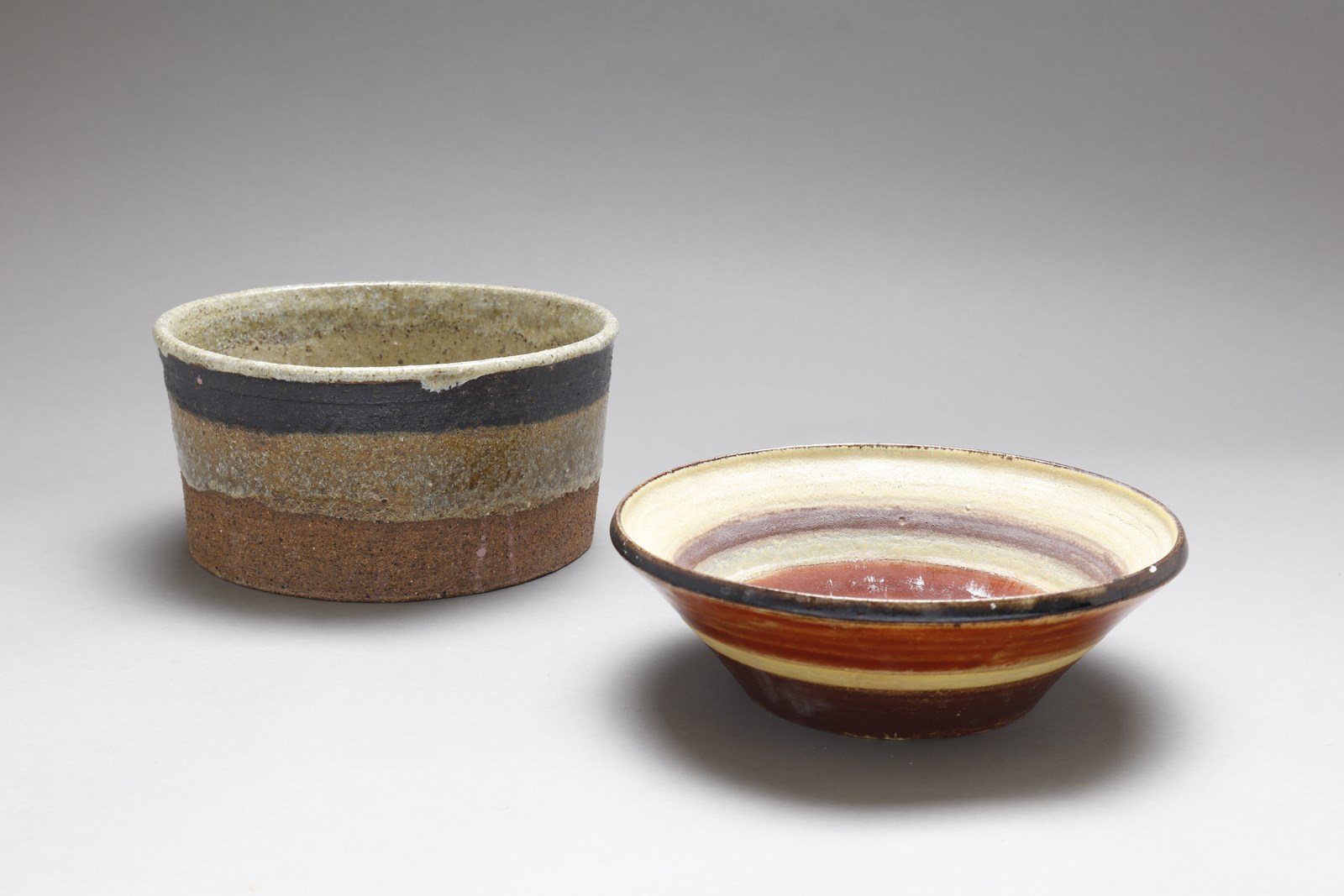 GAMBONE BRUNO (n. 1936) Coppia di ciotole anni '60. Gres policromo.. Cm 25,50 x 12,00. Firma dell'autore alla base. Ciotola 2: 8 x 23 cm