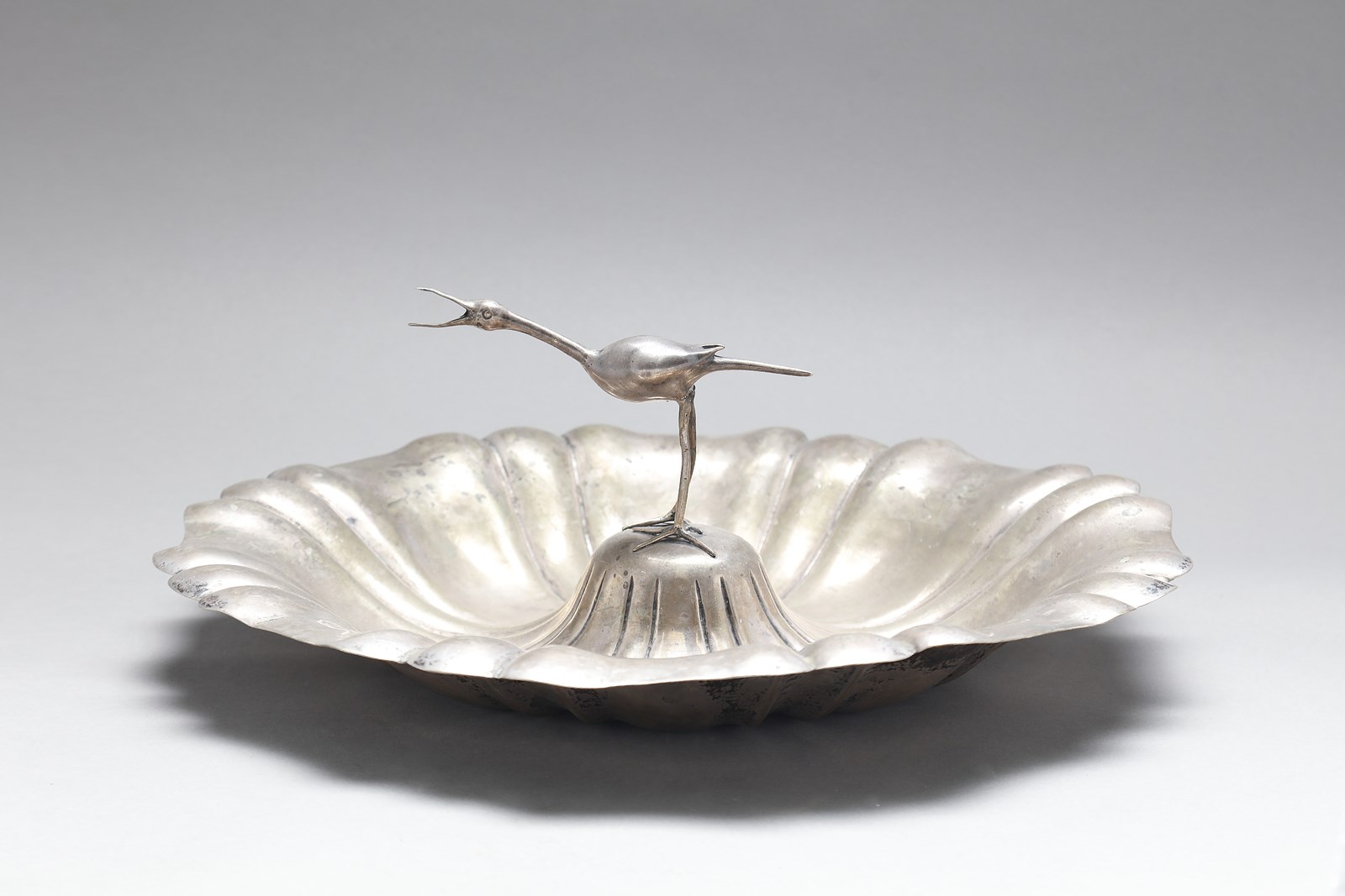 LUIGI GENAZZI MILANO Centrotavola anni '40. Argento. Cm 40,00 x 15,00 x 40,00. Punzone dell'argento e marchio del fonditore sotto la base: 800, Genazzi.