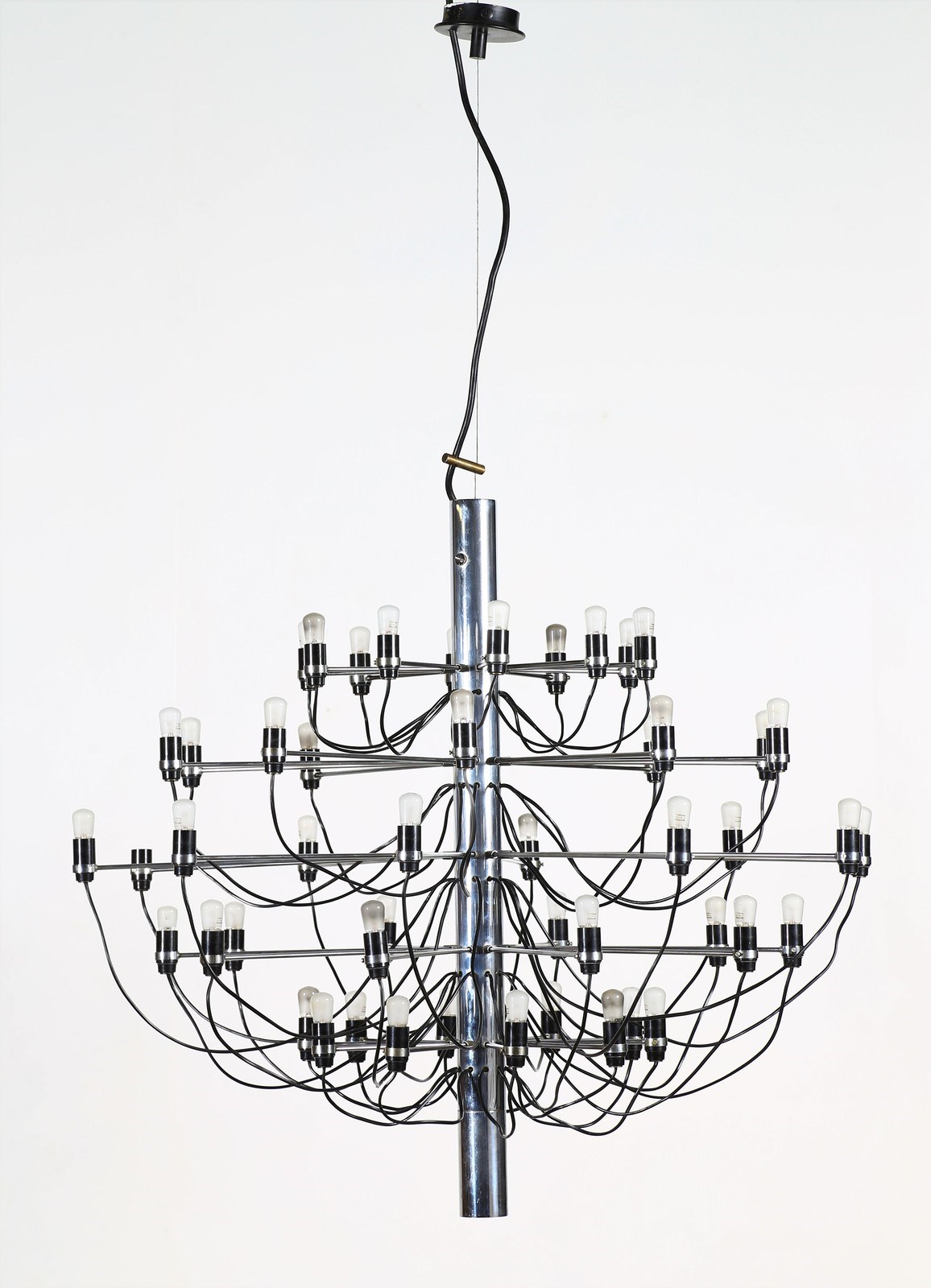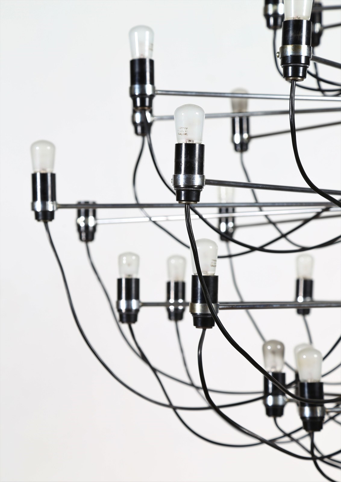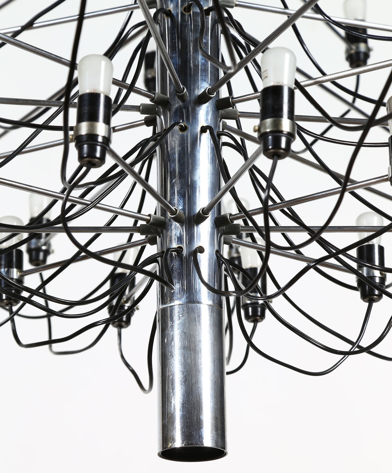 SARFATTI GINO (1912 - 1985) Lampada a sospensione modello 2097/50, produzione Arteluce, 1958. Metallo cromato.. Cm 100,00 x 88,00 x 100,00. Etichetta della manifattura. Bibliografia: Romanelli M., Severi S., Gino Sarfatti opere scelte 1938-1973, Silvana editoriale, 2012, p. 473