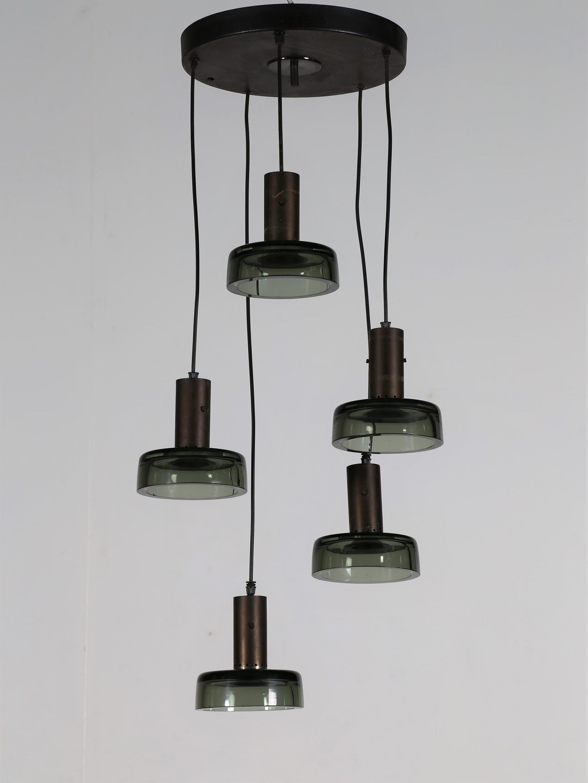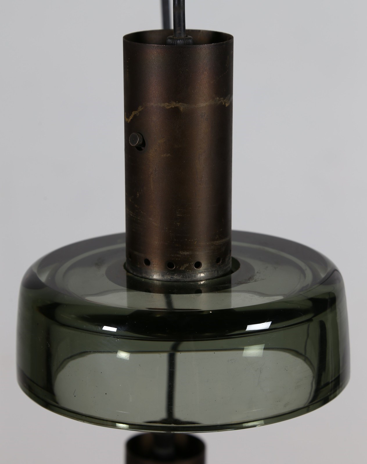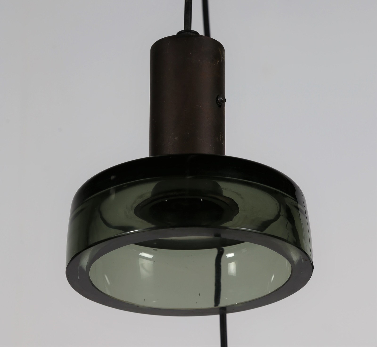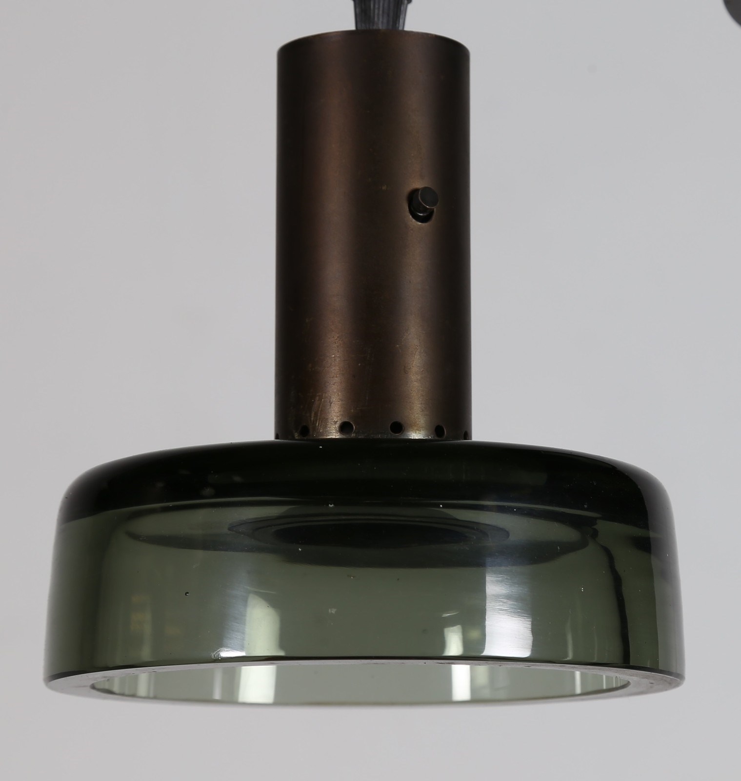 SEGUSO VETRI D'ARTE Lampada a sospensione anni '70. Metallo verniciato e cristallo molato.. Cm 33,50 x 100,00.