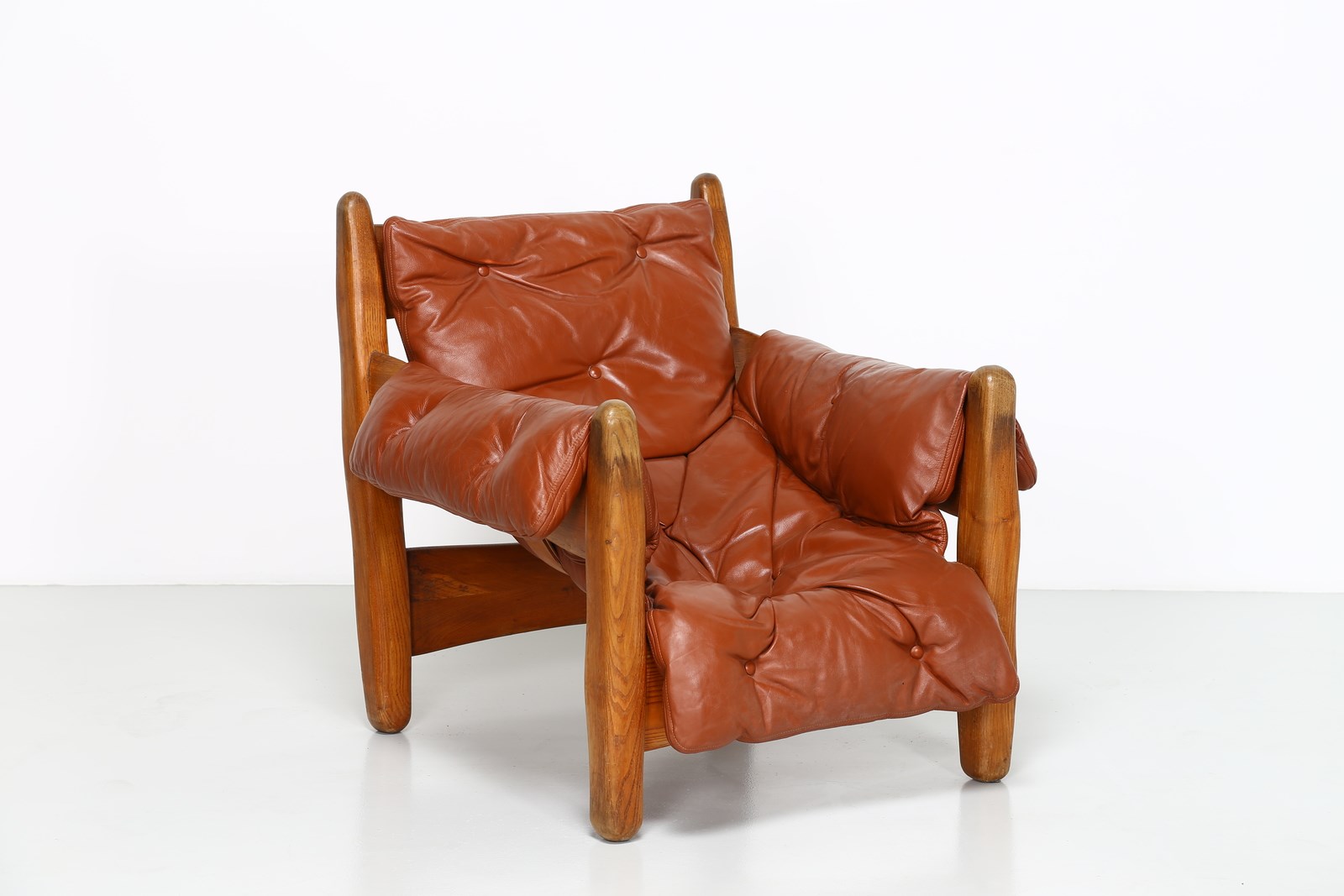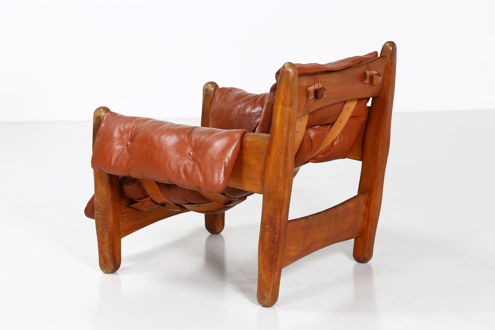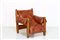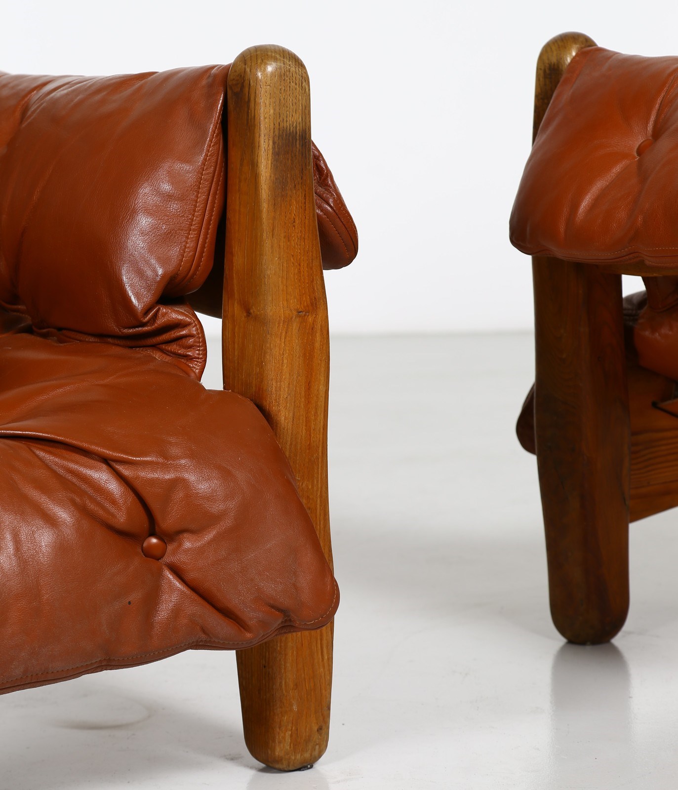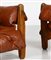 RODRIGUES SERGIO (n. 1927) Coppia poltrone mod. Sheriff, produzione Isa Bergamo, anni '60. . Legno e pelle imbottita. Cm 90,00 x 80,00 x 80,00.