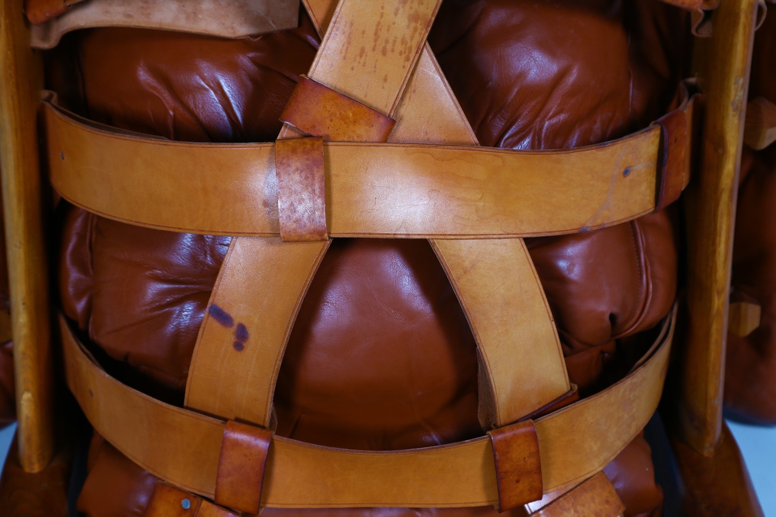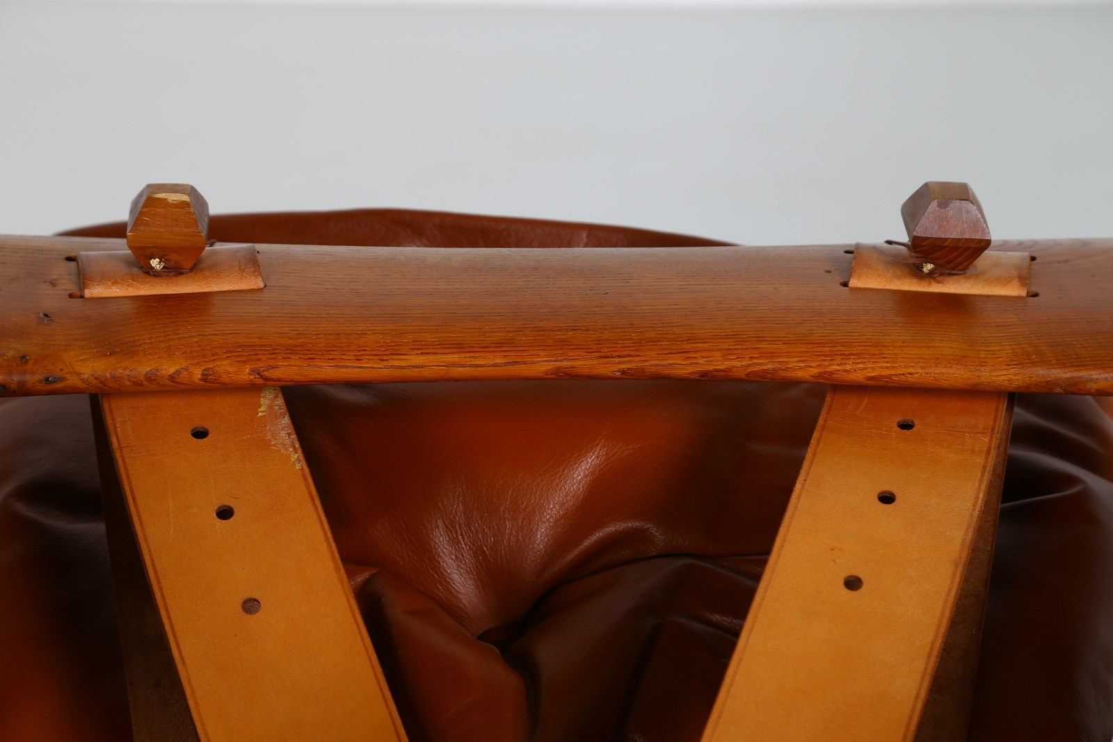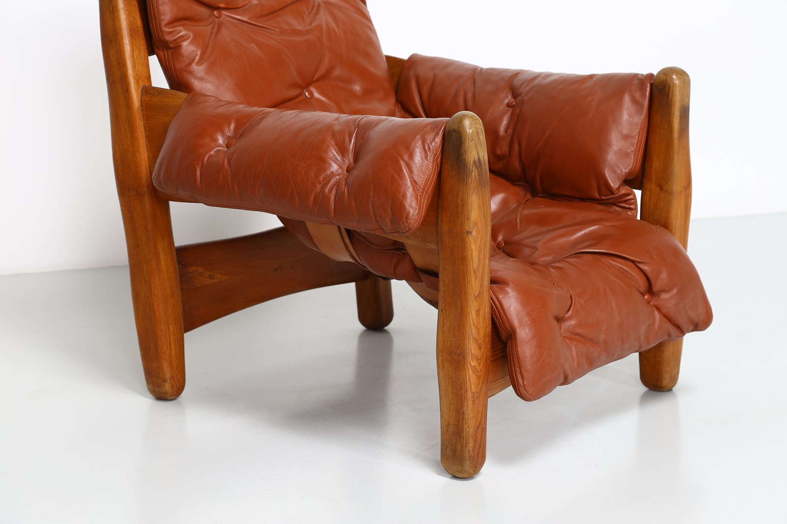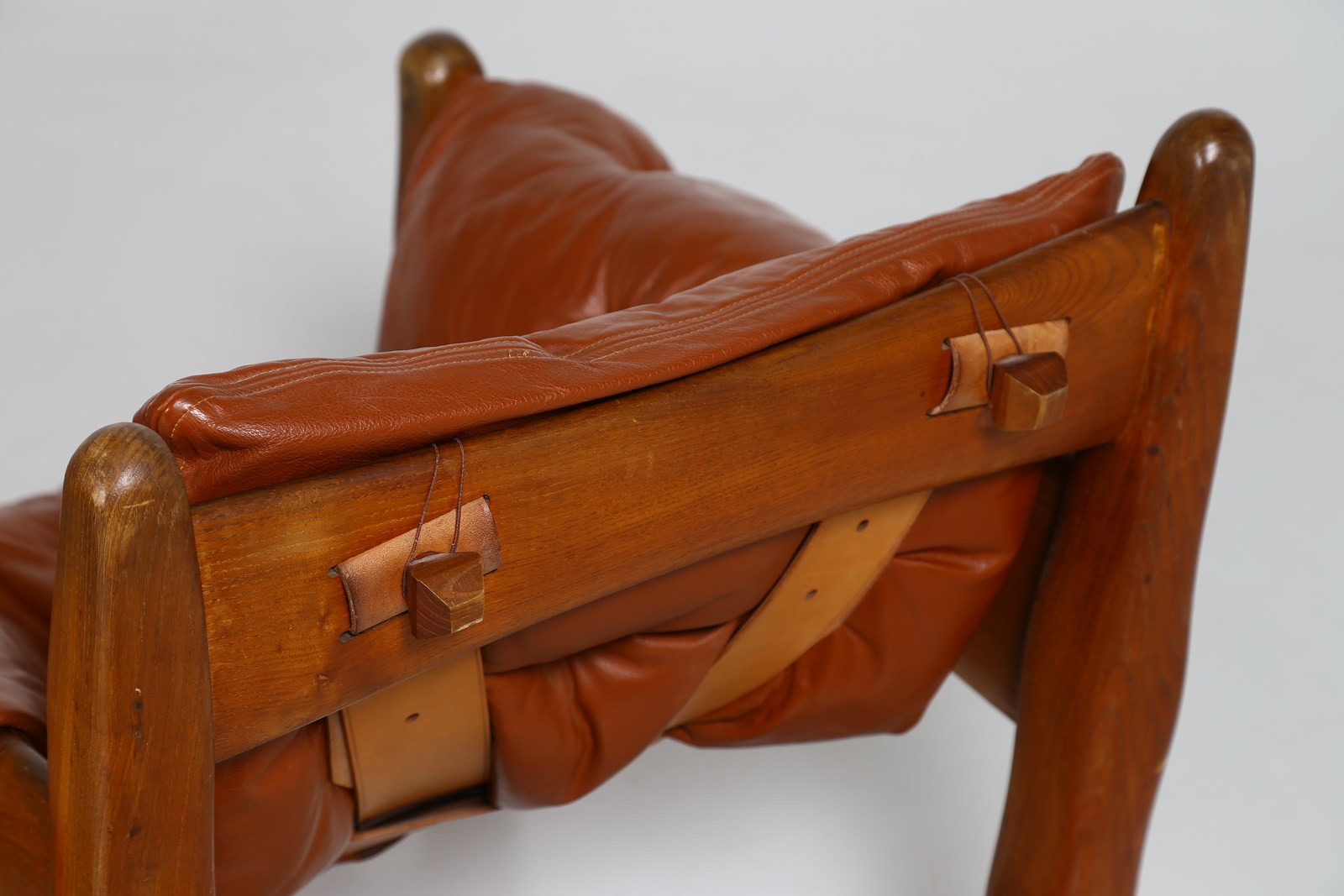 RODRIGUES SERGIO (n. 1927) Coppia poltrone mod. Sheriff, produzione Isa Bergamo, anni '60. . Legno e pelle imbottita. Cm 90,00 x 80,00 x 80,00.