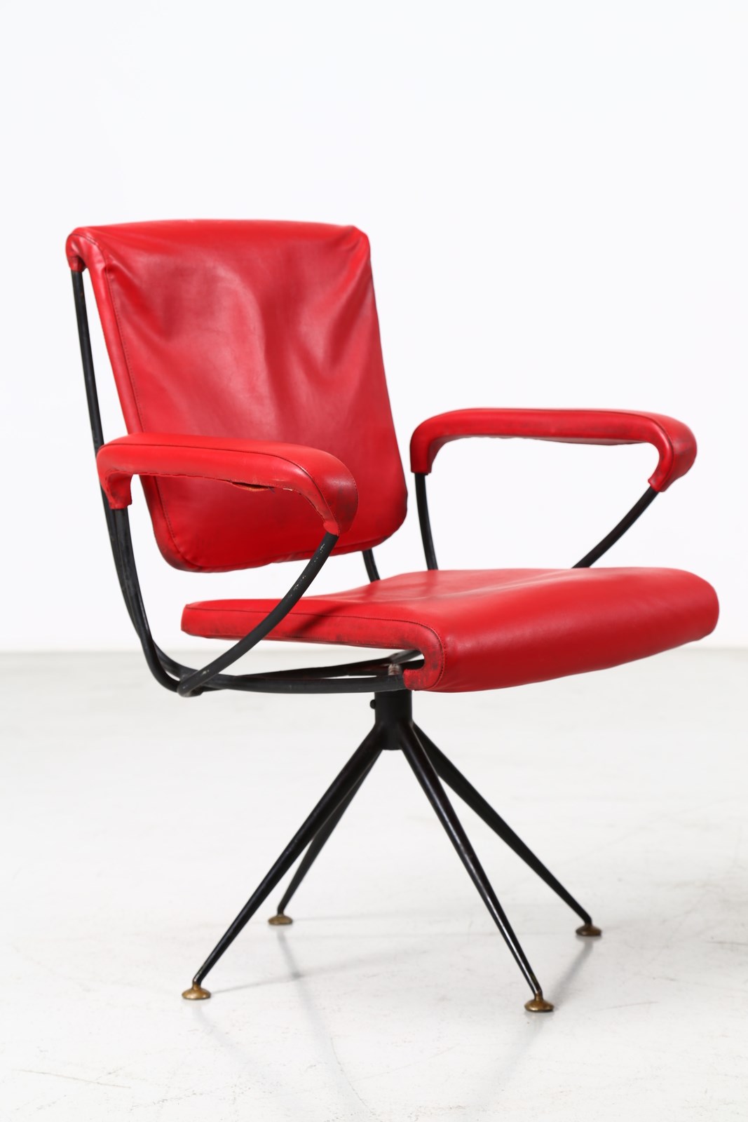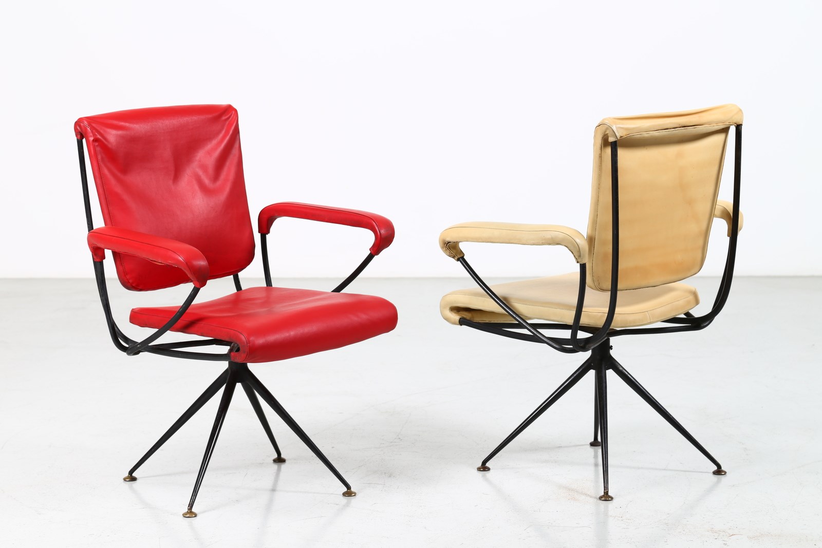 RINALDI GASTONE (1920 - 2006) Coppia di poltoncine modello Du24a, produzione Rima, 1956. Tondino di ferro e similpelle.. Cm 62,00 x 82,00 x 57,00. Bibliografia: Drago G., Drago J., Gastone Rinaldi designer alla Rima, Capitolium Art edizioni, 2015, p. 187