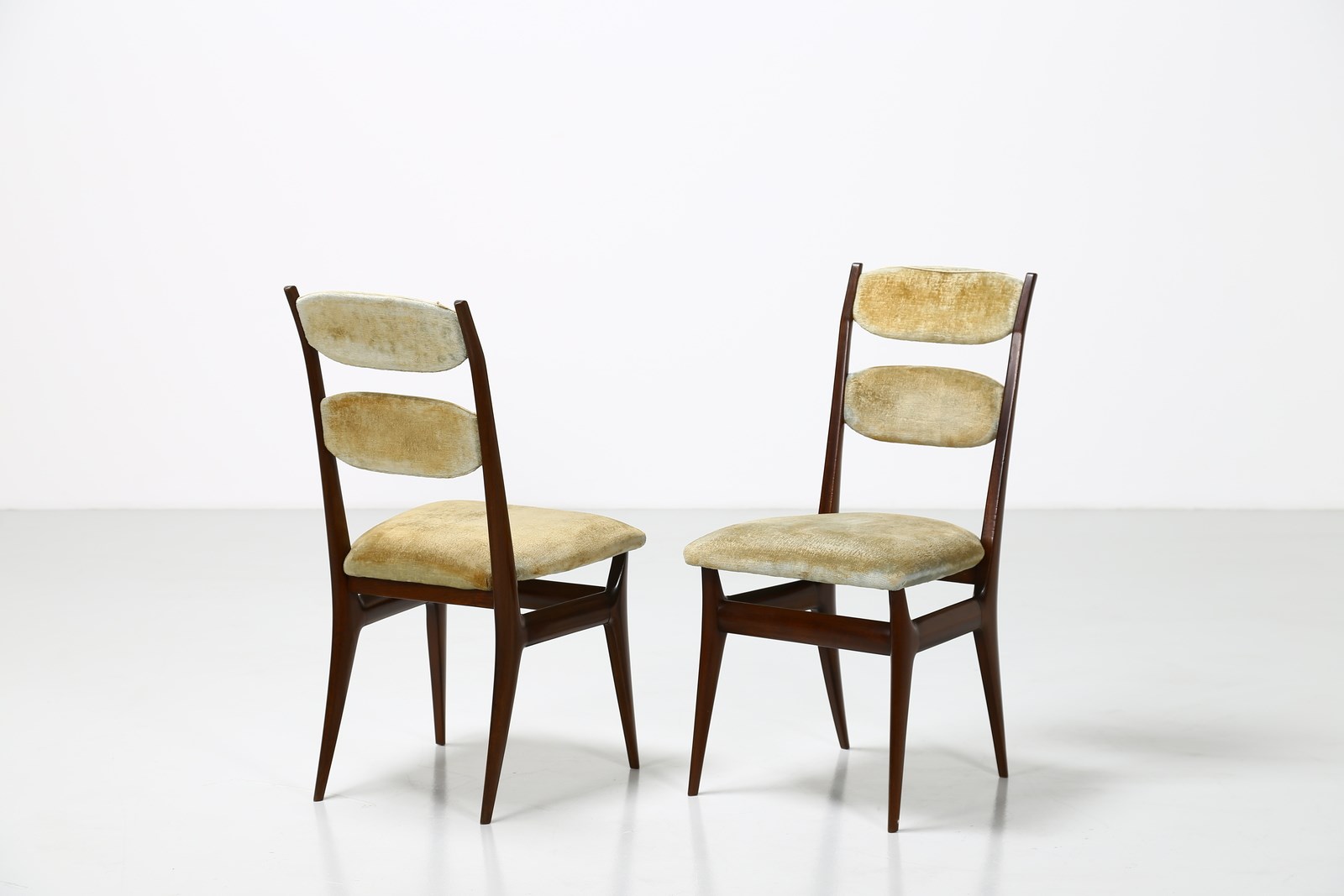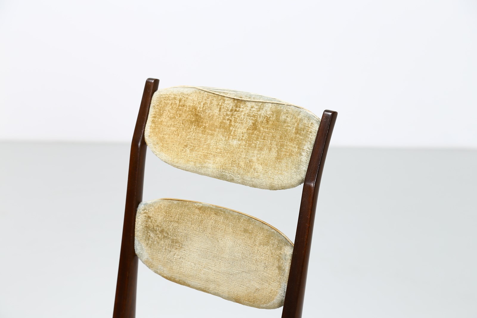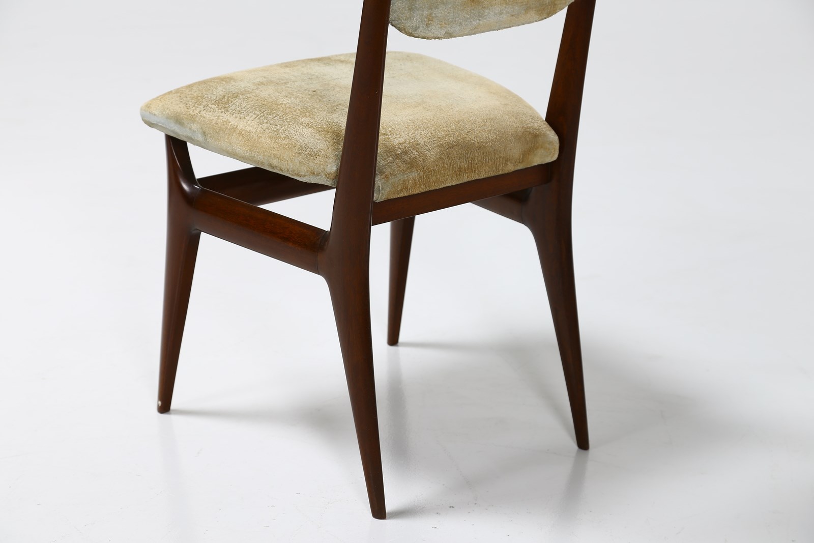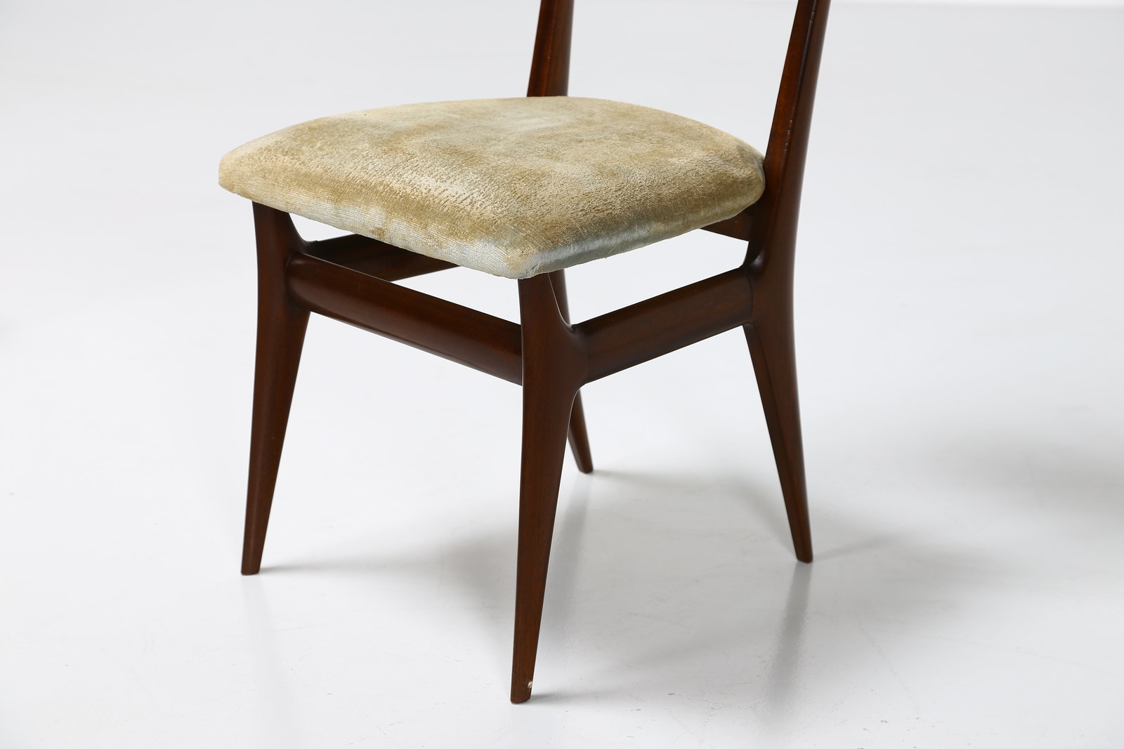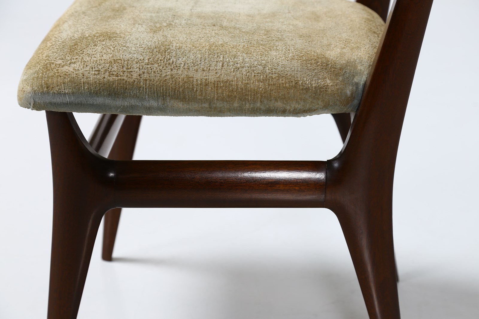 MANIFATTURA ITALIANA Otto sedie anni '50. Legno e velluto imbottito.. Cm 46,00 x 93,00 x 50,00.
