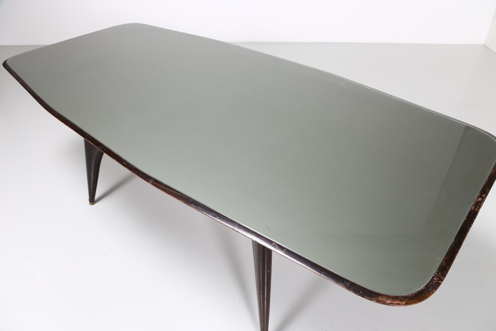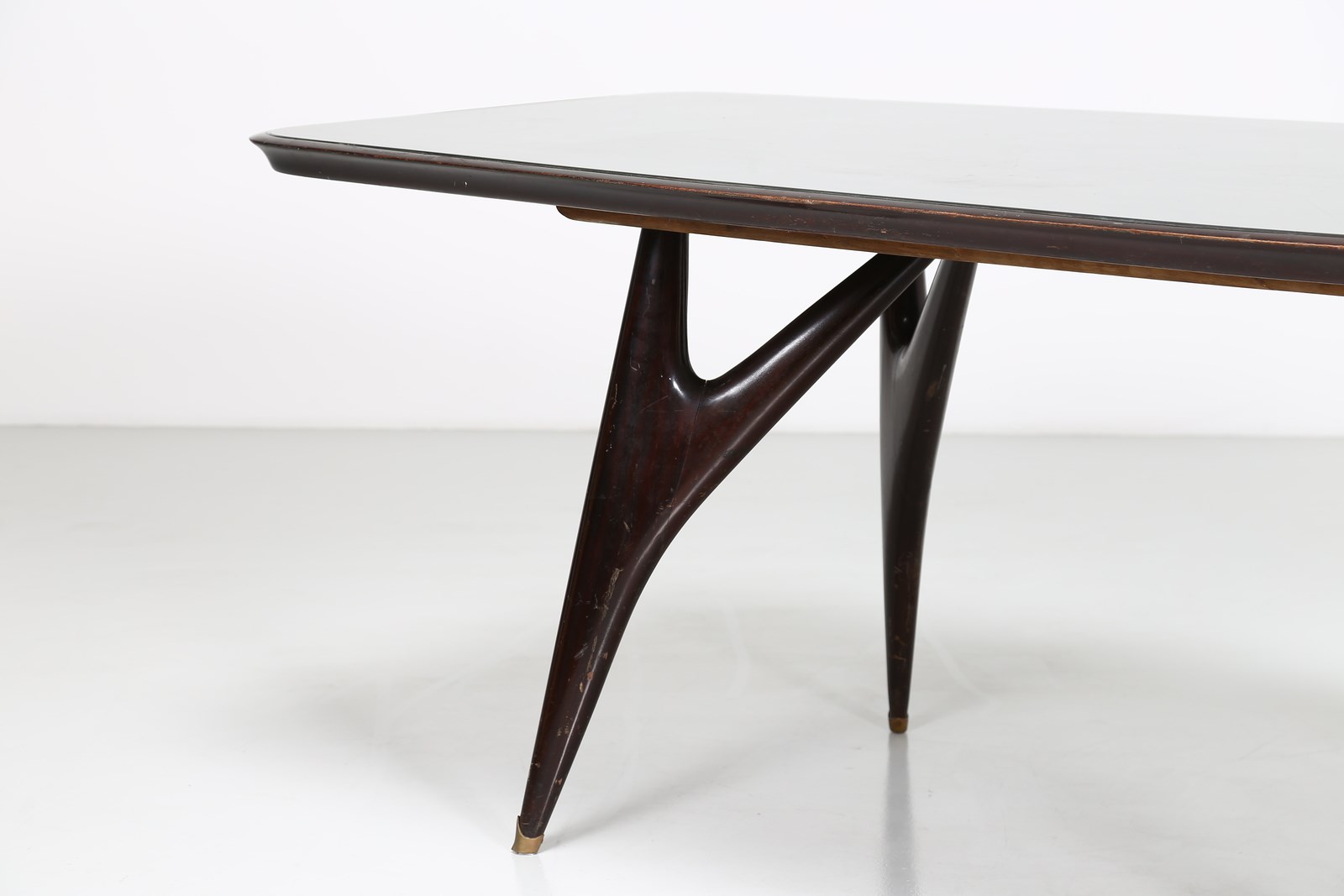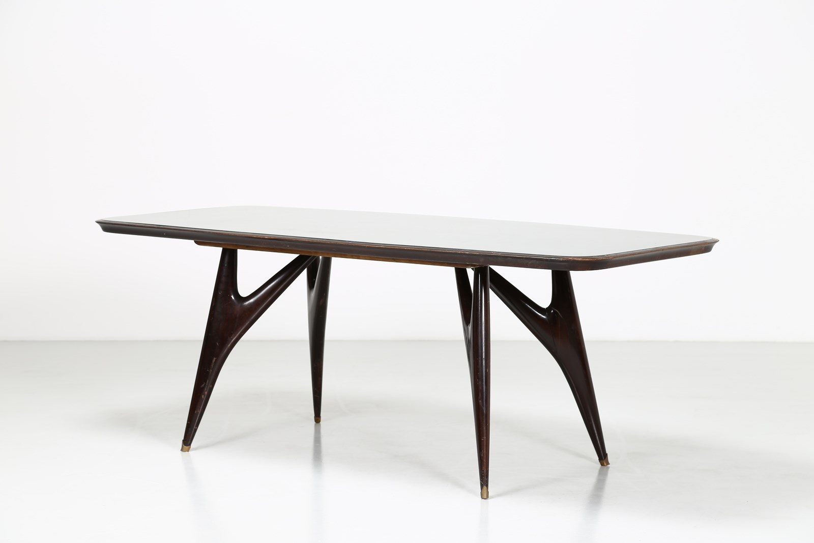 PARISI ICO (1916 - 1996) (attribuito) Tavolo da pranzo anni '50. Legno e cristallo molato.. Cm 201,00 x 78,00 x 93,00.