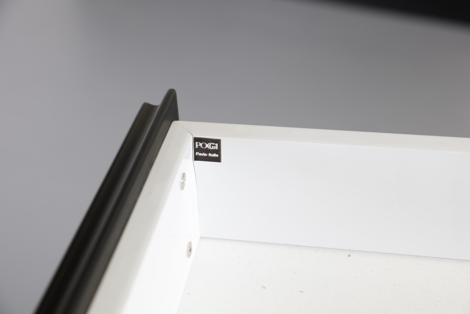MAGISTRETTI VICO (1920 - 2006) Coppia di cassettiere, modello CS49, produzione Poggi anni '70. Legno laccato e skai.. Cm 180,00 x 74,00 x 54,00. Etichetta della manifattura.