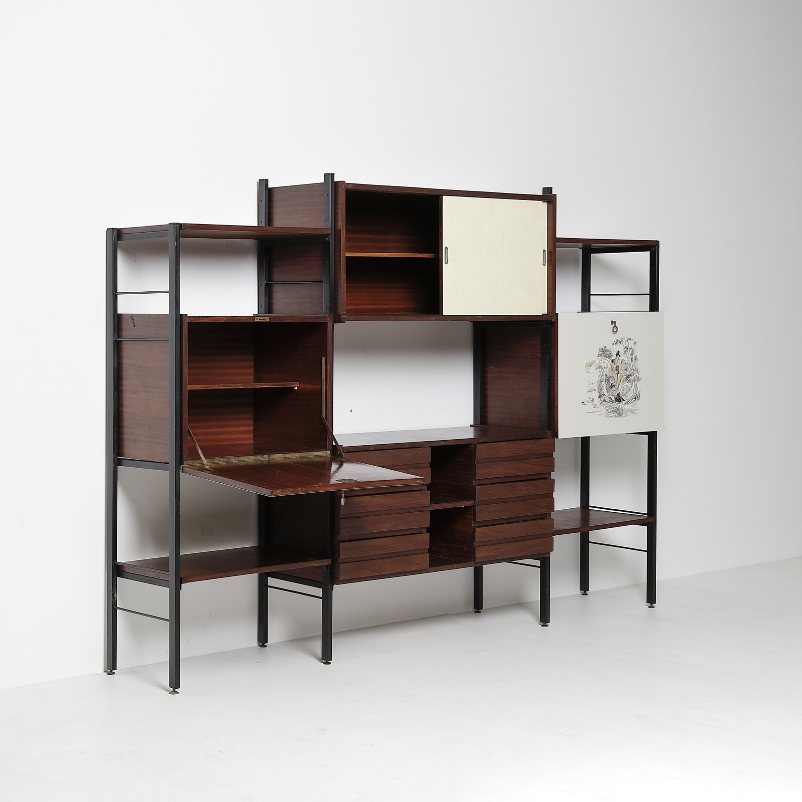 MANIFATTURA ITALIANA Mobile anni '50. Legno di mogano e metallo verniciato.. Cm 248,00 x 180,00 x 45,00.