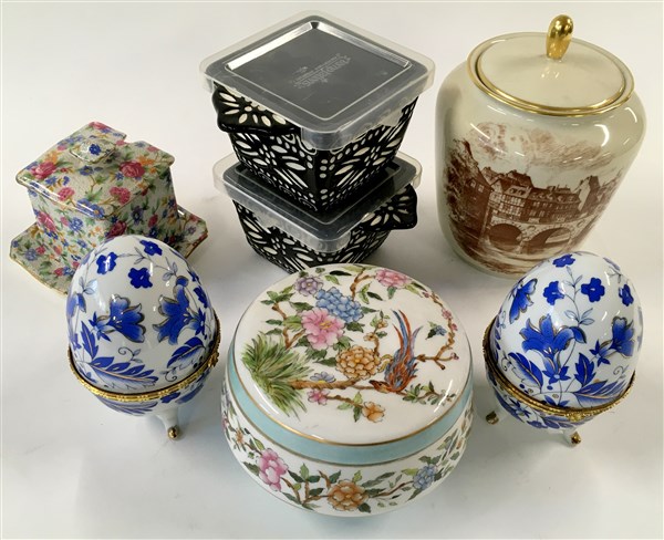 Manifatture diverse. Lotto di sette contenitori diversi in ceramica e porcellana (difetti)