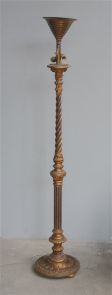 Lampada da terra con fusto in legno intagliato, scanalato e dorato (h cm 174) (difetti)