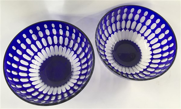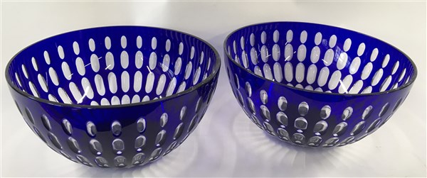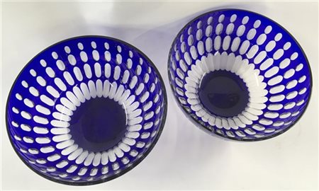 Coppia di insalatiere in cristallo molato incolore e blu cobalto (d cm 26)