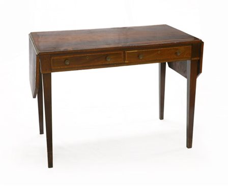 Scrittoio con piano ad alette lastronato e filettato, due cassetti e due finti cassetti, gambe rastremate, secolo XIX (cm 100x73x57) (difetti e mancanze)