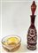 Lotto composto da una bottiglia ed una ciotola in vetro e cristallo molato, con decori e colori diversi