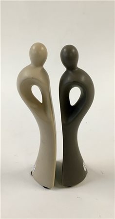 Coppia di sculture in ceramica raffiguranti figure (h cm 16) (lievi difetti)