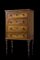 Antico mobiletto in ciliegio a quattro cassetti, gambe scanalate e intagliate (