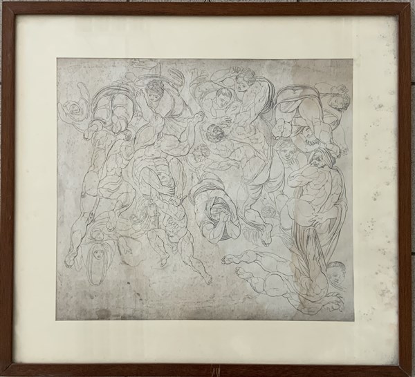 Incisione raffigurante "La cacciata dei dannati" dettaglio del "Giudizio Universale" di Michelangelo (cm 30x34 circa). In cornice