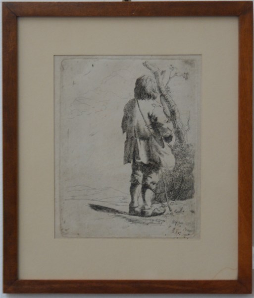 Artista del secolo XVIII "Pastorello", acquaforte, siglata e datata "B.G. fecit 1771". In passepartout e cornice (difetti)