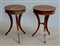 Coppia di tavolini tondi tripodi con cassetto nella fascia e gambe a sciabola (