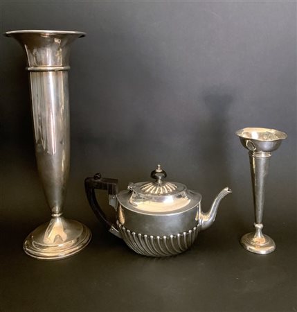 Lotto composto da una teiera e due vasi portafiori in argento (g lordi 770 circ