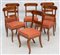 Gruppo di sei sedie con schienale a giorno decorato a volute fogliate, gambe an