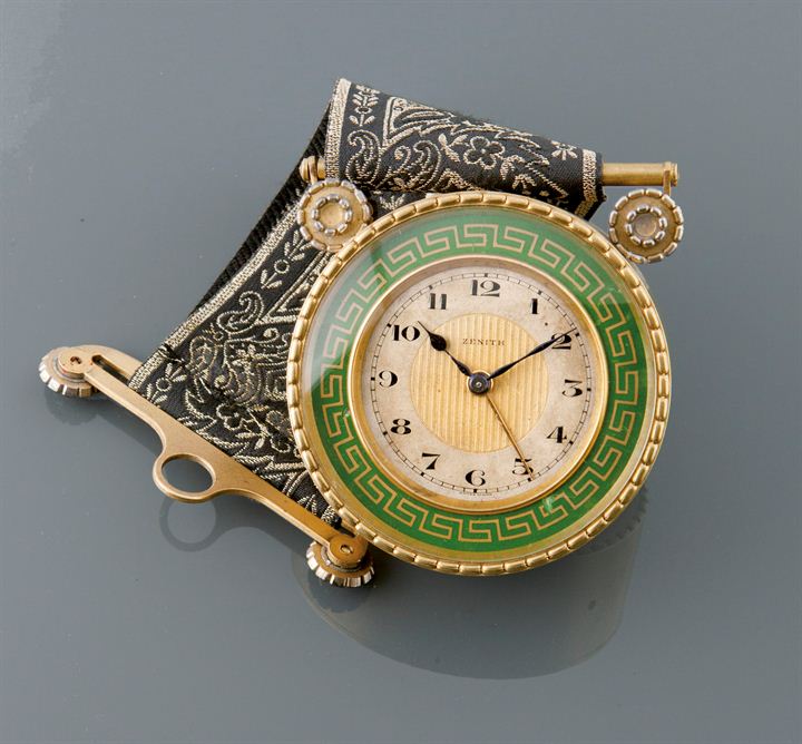 Cassa tonda in due parti, lavorata ed impreziosita da smalti policromi; quadrante tapisserie serigrafato
