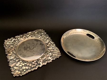 Lotto composto da due piatti in argento di diverso decoro (g 1000 circa)