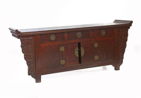 Mobile a tre cassetti e due sportelli con fregi decorati a draghi stilizzati. Cina, prima metà sec. XX (cm 217x90x50) (difetti e mancanze)
