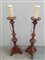 Coppia di candelieri tripodi in legno intagliato,secolo XVIII, montati a luce e