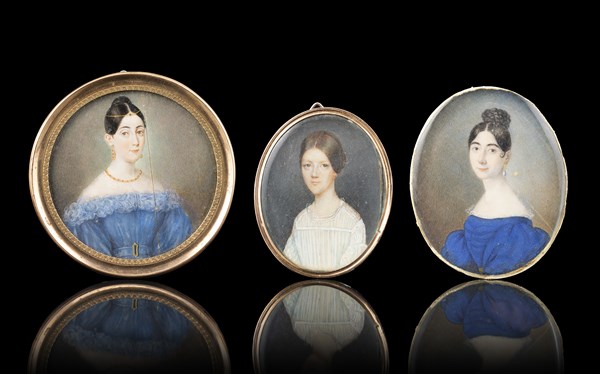 Scuole del secolo XIX "Ritratti di fanciulle" tre miniature su avorio di misure