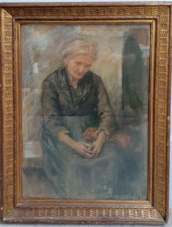 "Tempo di guerra, vana attesa" 1916, carboncino e pastelli su carta (cm 86X63) Firmato e datato in basso a sinistra; titolato in alto destra. In cornice
