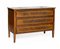 Comò lastronato in noce e radica di noce e filettato in legni diversi, tre cass