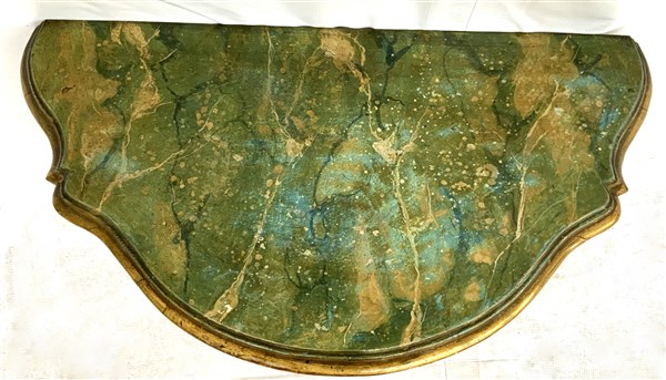 Coppia di mensole in legno intagliato, dorato e argentato a ghiarlande di fiori e vasi. Piano laccato a finto marmo. Secolo XIX (h cm 53)