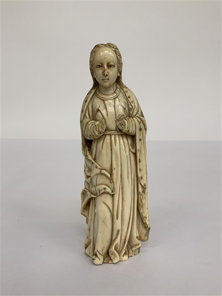 Scultura in avorio raffigurante la Vergine Maria, fine secolo XVIII (h cm 17,5) (difetti e mancanze)
